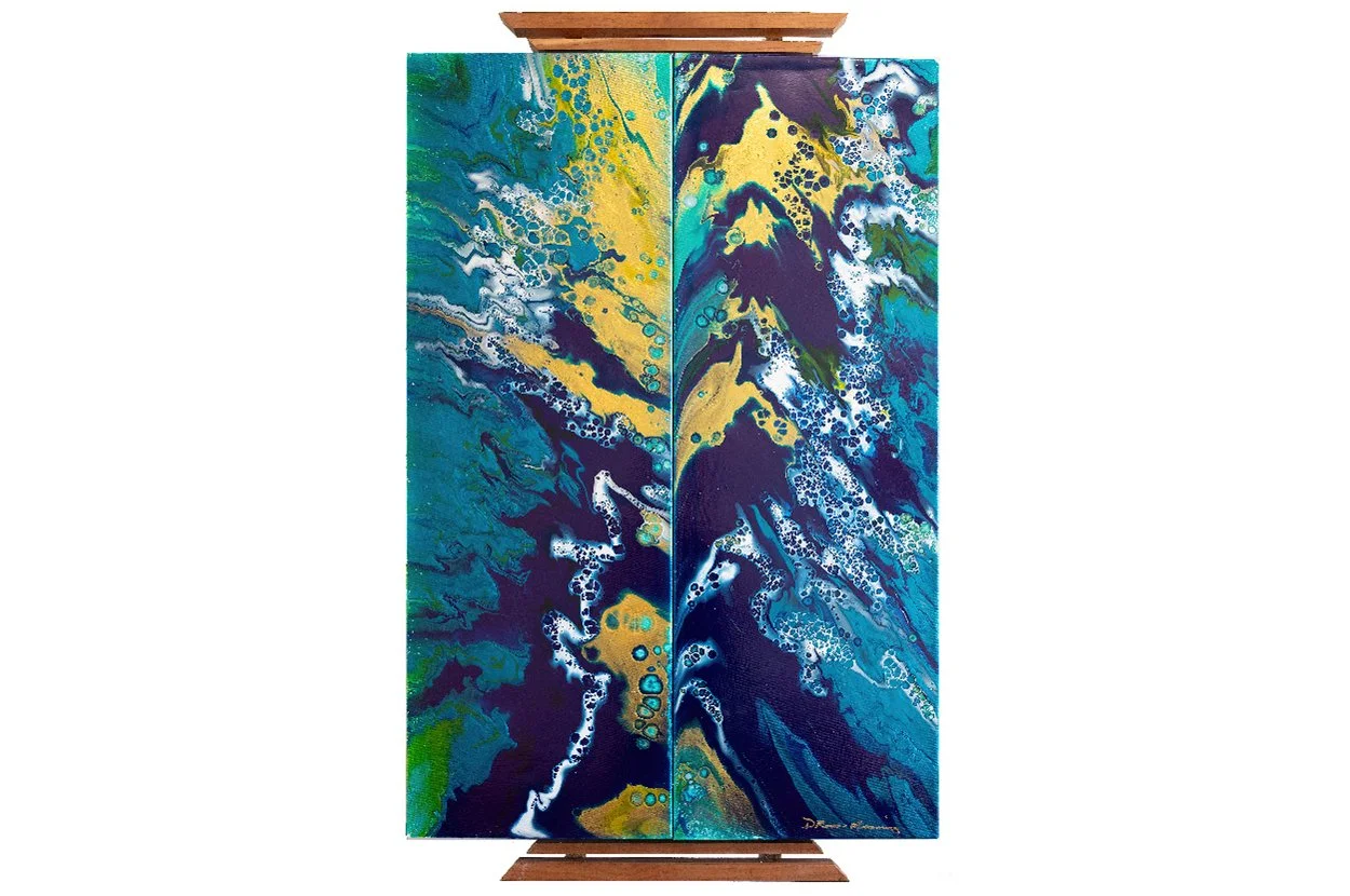 My work is informed by nature, the beauty, the grace, the fury, something so far beyond myself. Things I see and feel applied to canvas, wood or metal. My painting technique is chemistry, and regardless of the endless thought and preparation of each subject the control is in the technique itself. The density of the paint, how I manipulate the weight, or apply fire to tease out the lighter colors, the result always holds surprises. My subjects give me the clues about which colors to use but they are always applied in layers from light to heavy, using transparent glazes to add intensity or mood. I desperately want my paintings to feel and look spontaneous and energetic but I often work and re-work a canvas many times before I feel satisfied with the result.