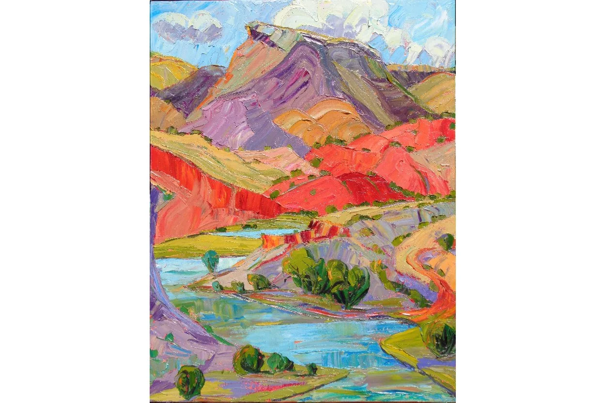 I love the visual beauty & colors of the west. I am a Contemporary Colorist & Expressionist. As a Plein Air Oil Painter, I am able to inhale the outdoors & translate that with impasto oils using palette knives and large brushes. I am most excited by the abstract forms that nature provides. I also love to paint the abstracted figure from life. Gallery Representation: The Signature Galleries, Santa Fe & Scottsdale, AZ; Wilder Nightingale Gallery, Taos, NM; Abiquiu Inn, Abiquiu, NM; Weems Gallery & Romero Street Gallery in Albuquerque, NM. Signature Member of Plein Air Painters of New Mexico. Painting Instructor: Ghost Ranch in Abiquiu; New Mexico Art League in Albuquerque, NM. Publications: SW Art Magazine; Plein Air Magazine; Phoenix Home & Lifestyle & Cowboys & Indians Magazines. Exhibitions: Cowgirl Up! at Desert Caballeros Museum, Wickenburg, AZ; & Millicent Rogers Museum, Taos, NM.